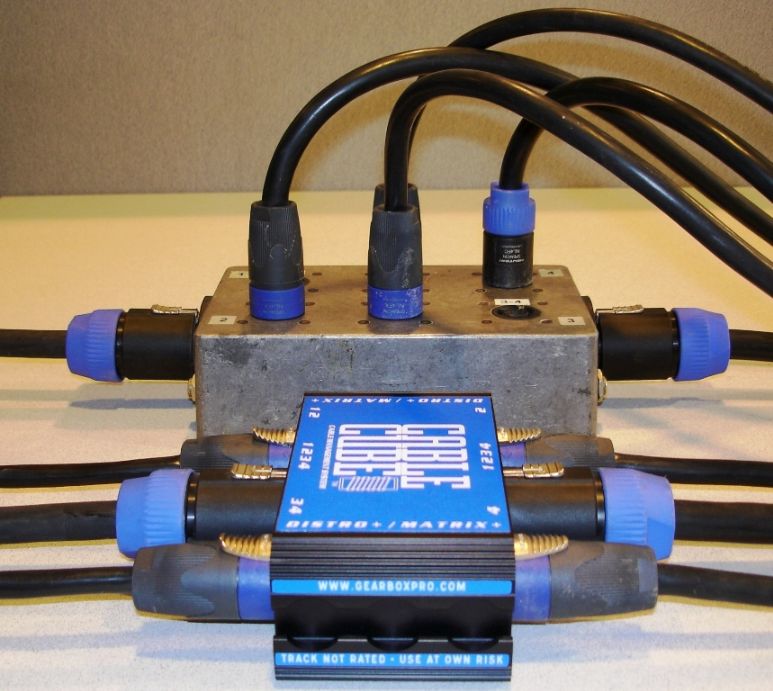 Cable Cube® is the first of many pro audio product lines Gear Box Pro is introducing. Cable management is a huge task when using amplifier distribution and multiple speakers in large setups such as touring rigs. Some speaker manufacturers are currently only providing one connector to daisy chain two speakers together, necessitating the design of our Cable Cube® cable splitter solutions.